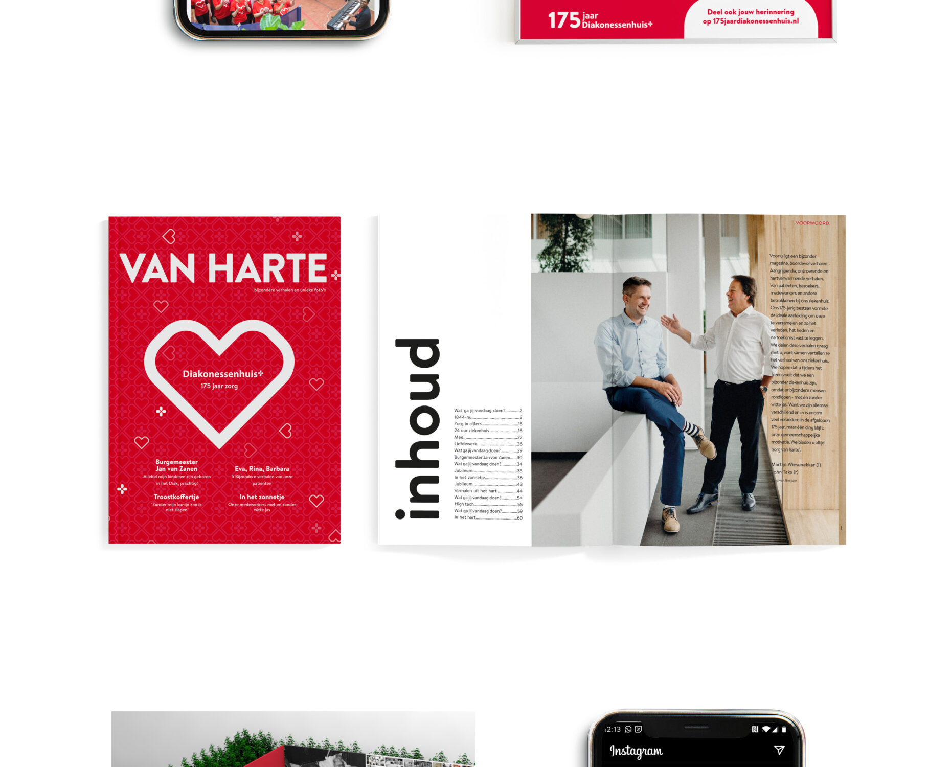 Voor het Diakonessenhuis stond een mijlpaal voor de deur: het 175-jarige bestaan! O werd gevraagd mee te denken over dit bijzondere jubileum. Hoe vier je dat? Wij zeggen: samen met de medewerkers, de patiënten en zoveel mogelijk inwoners van de regio. We bedachten een jubileum-motto waarin alles samenkwam: Zorg van harte. Het DNA van ‘het Diak’, de verjaardag en de unieke historie van 175 jaar zorgen vanuit het hart – alles zit erin.