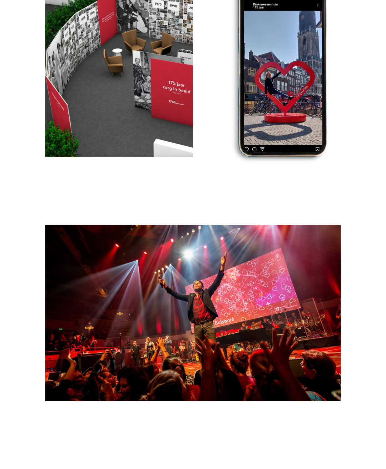 We ontwikkelden samen met communicatie en directie een strategie voor jaar lang durend feest met een iconisch beeldmerk: het rode hart. We bouwden een rondreizende openingstentoonstelling met prachtige oude beelden en ontwikkelden een magazine, jubileumwebsite en -boek met verhalen van Diak-medewerkers en (ex-)patiënten. Het jaar sloten we af met een hilarische muzikale voorstelling en een dampend feest in TivoliVredenburg voor alle medewerkers.