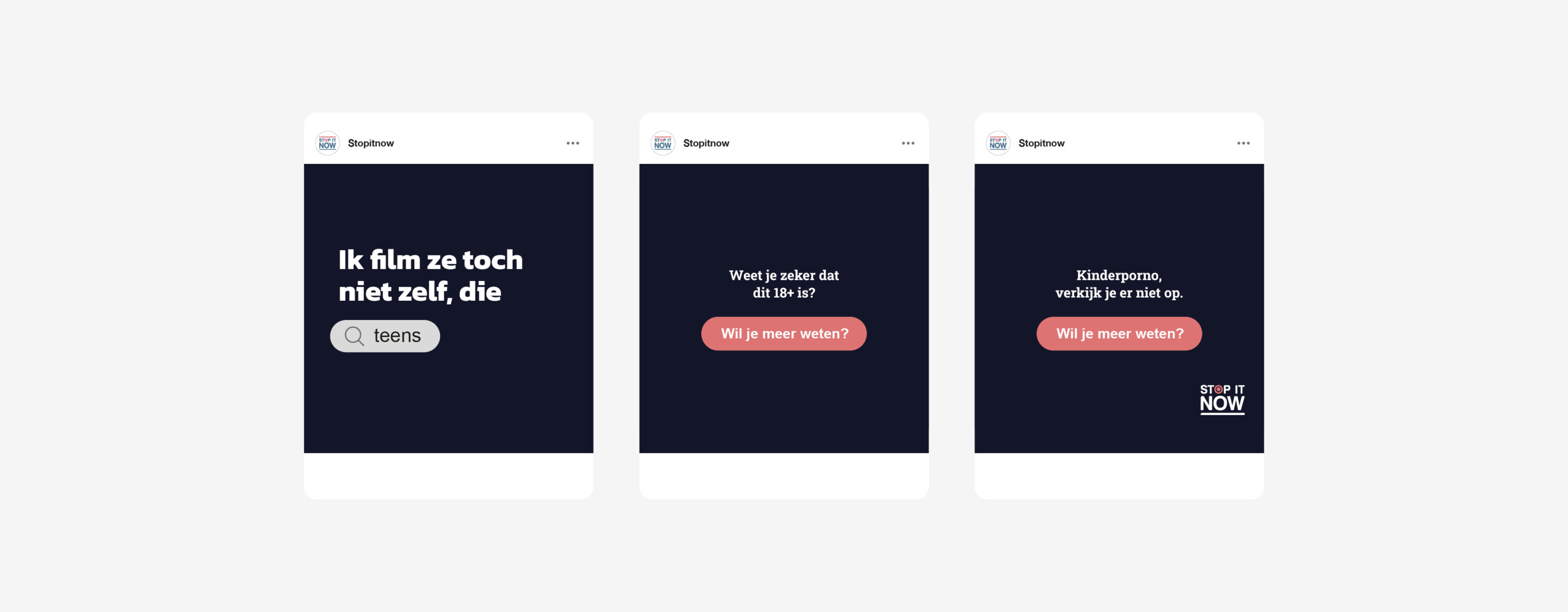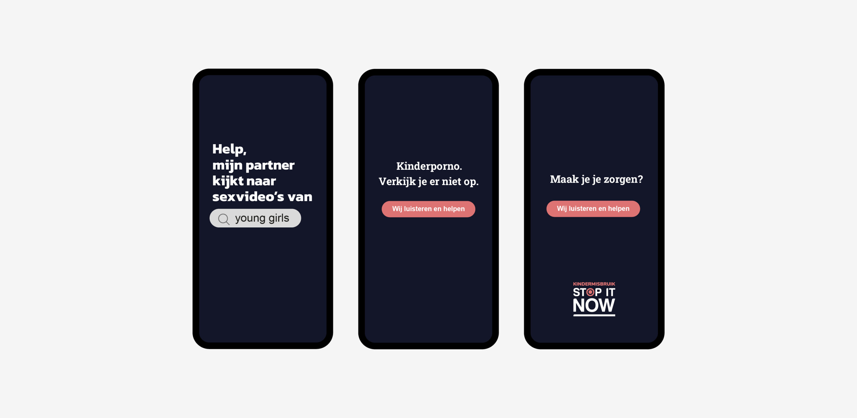 We vonden de vraag van Stop it Now best heftig: of we een campagne konden bedenken tegen het bekijken van kinderporno. Poeh. Hoe pak je dat aan? Wie is je doelgroep en hoe zorg je dat je ze bereikt?