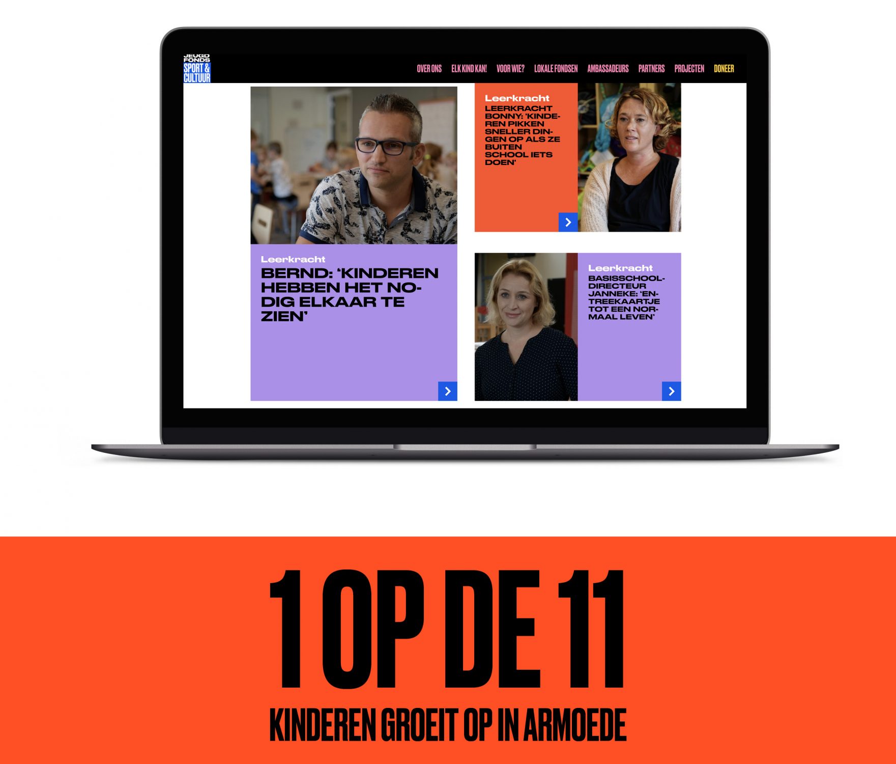 In elke klas zitten 2 à 3 kinderen bij wie thuis géén geld is om op voetbal te gaan. op dansles of judo. Jeugdfonds Sport & Cultuur vroeg ons een campagne te ontwikkelen om op basisscholen nieuwe intermediairs te werven. Intermediairs zijn onder andere leerkrachten, die aanvragen doen, zodat Jeugdfonds de contributie voor een kind kan betalen.